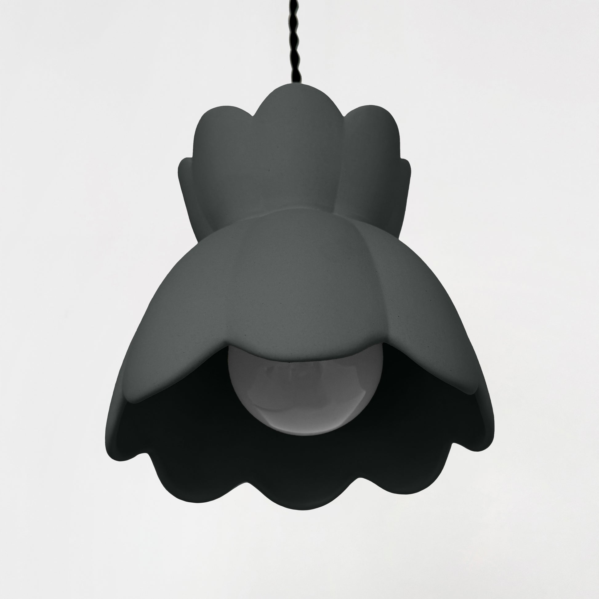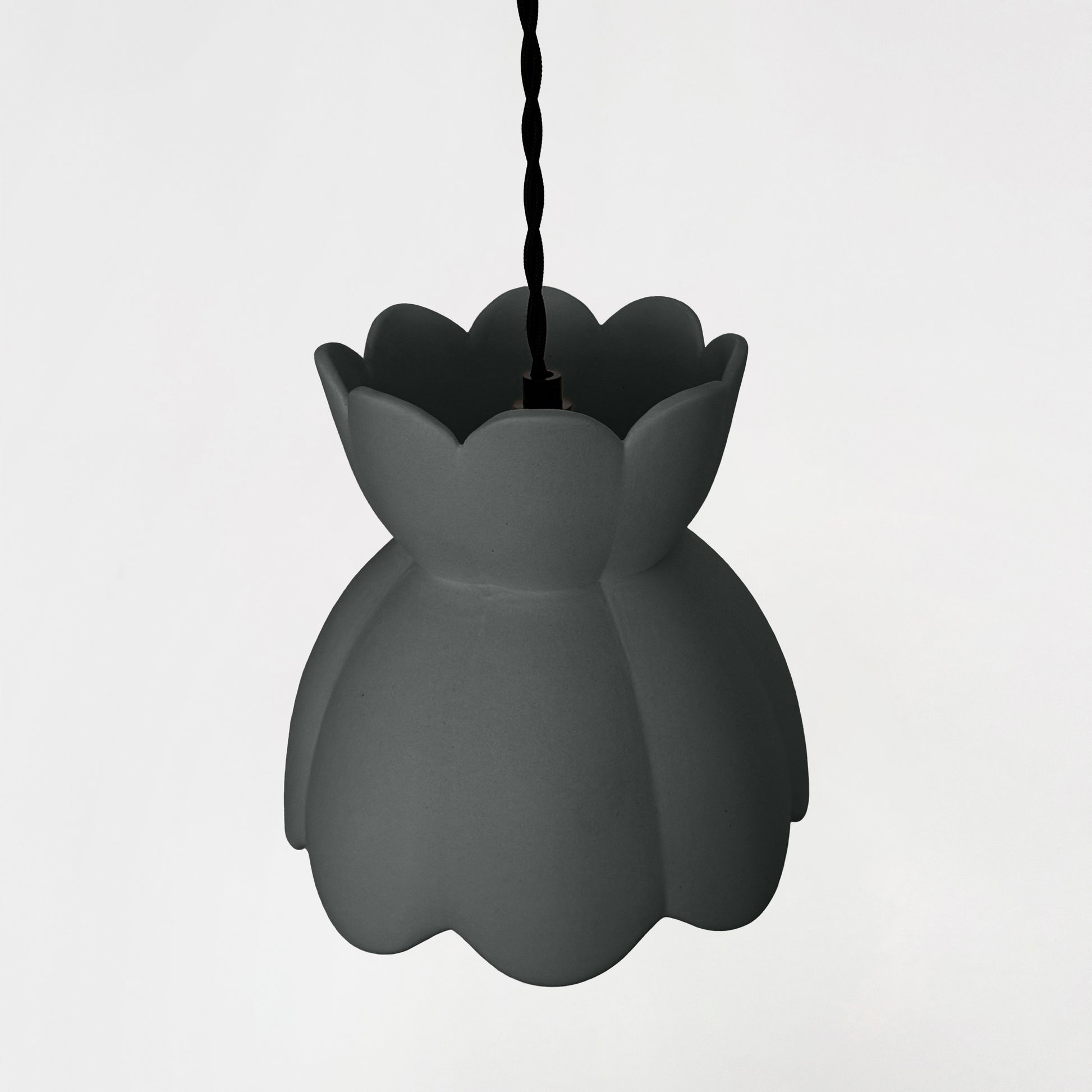 Vallea Pendant Light | Small Floral Hanging Fixture | Shadow Charcoal Gray